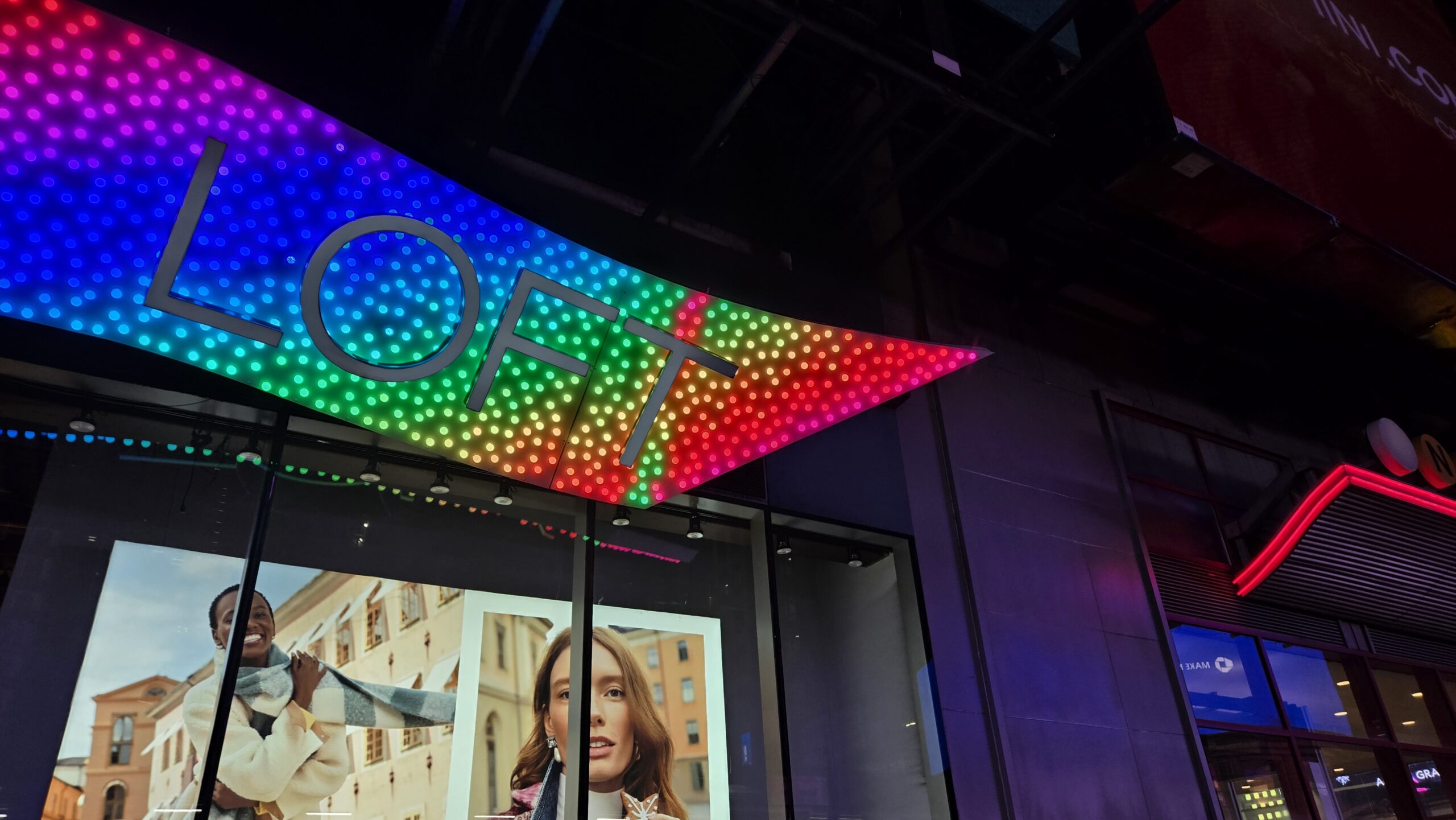 LOFT’s decades-old signage had become outdated and was in dire need of a complete overhaul to meet modern visual and electrical standards. Our team was challenged with transforming their aging monochrome display into a dynamic RGBW display capable of playing graphic scenes promoting LOFT’s flagship store in the heart of Times Square in New York City.